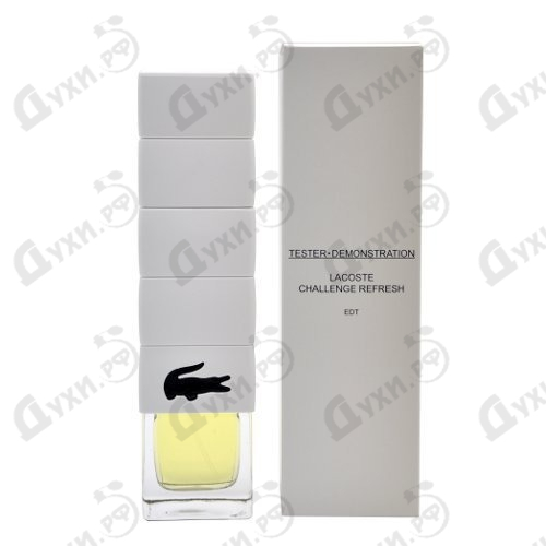Флакон Lacoste Challenge Refresh выполнен в соответствии со стилем бренда Лакоста. Прозрачный флакон, увенчанный очень высокой крышкой с изображением фирменного крокодильчика на передней стенке. Он, кажется, оформлен так, чтобы привлечь внимание энергичного, стильного, современного, живущего в ногу со временем мужчины. В целом, парфюм Lacoste Challenge Refresh способен удовлетворить потребности самого требовательного покупателя. Под действием этого аромата вы почувствуете подъем тонуса, повышение энергии и испытаете множество положительных эмоций.