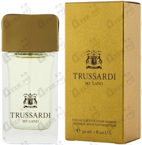 Аромат 2012 года Trussardi My Land привносит в жизнь современного мужчины нотки пикантности и очарования. Букет, созданный парфюмером-женщиной Alexandra Kosinski, воплощает в себе изящество и утонченность. Это легкий и свежий аромат, который несет в себе нотки чувственности и молодости, энергию и дерзость. Для мужчин в возрасте такой пьянящий коктейль не подойдет, но станет прекрасным решением для энергичных молодых мужчин, желающих получить от жизни максимум. Именно для них создана очаровательная и стильная композиция, вызывающая неповторимое замилование. Trussardi My Land переливается цитрусовыми аккордами в основании композиции, а после звучание букета переходит к эмоциональности цветочных аккордом. Мягкость и легкость звучания фиалки и лаванды становится символом соблазнительности и сексуальности обладателя. Чувственное завершение композиции представлено согревающими аккордами камеширового дерева, бобов тонка, ветивера и пряной кожи, которая заставляет кровь быстрее стремиться по жилам, будоражит чувства и вызывает сильнейшие эмоции.