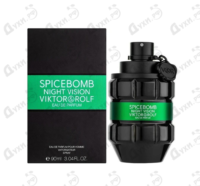 В 2020 году парфюмеры известного бренда Viktor & Rolf представили новую, еще более интенсивную и насыщенную фужерными нотами композицию для мужчин, которая обрела имя Viktor & Rolf Spicebomb Night Vision Eau De Parfum. Как и прежде, аромат облачен в стильный футуристичный флакон из темного стекла с яркими изумрудно-зелеными акцентами, яркий и харизматичный, как и сам таинственный обладатель этой роскошной парфюмированной воды. Картина унаследовала фирменные комбинации пряностей и смол, которыми характеризуются все творения серии Spicebomb, однако, ее звучание все-таки стало чуть более освежающим и прохладным в сравнении с предыдущими релизами. Сами создатели называют характер своего творения “электрически-свежим”, расставляя акценты на изысканных миксах цитрусовых и пряных аккордов, создающих полноценную гармонию запаха. В качестве авторов был приглашен талантливый парфюмерный дуэт Nathalie Lorson и Pierre Negrin, которые смогли воссоздать величие и темноту восточных специй, сочетая их с насыщенными тонами фруктов. В вершине треугольника Viktor & Rolf Spicebomb Night Vision Eau De Parfum звучат фейерверки брызг лимона и грейпфрута, а также зеленого яблока, душистого тандема черного перца и стручкового перца чили, мускатного ореха и пряности гвоздики . Пламенный кардамон придает аромату неповторимого шарма и плавно уходит в глубины пряного сердца, где бушуют потоки кориандра, мастикового дерева, розмарина, мяты, мускатного шалфея и лаванды. Выразительный шлейф передает тепло мужской души и вспыхивает в воздухе нотами фисташек, орехов, бензоина, пихтового бальзама, бензоина, кедра, олибанума, перуанского бальзама, пачули и лабданума.
