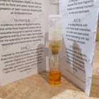 Заказ #25188868. Фирменный пробник, жалко, что не как в карточке товара, без открытки. Но описание нашлось в соседнем пробнике=). К композиции. Это тубероза, присыпанная перчиком и шафраном. Тёплый и пряный аромат. С меня слез через пару часов.