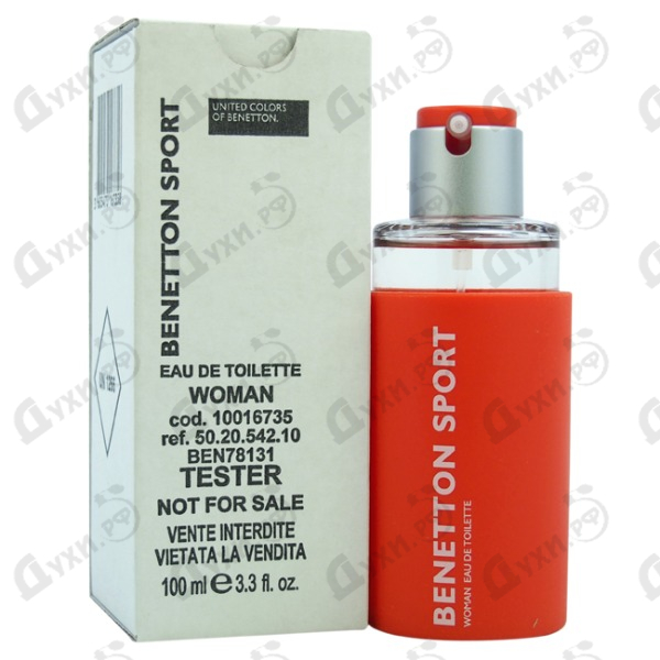 В 2001 году Benetton выпускает в свет свой новый женский спортивный парфюм Benetton Sport. Он идеально подойдет активной молодой девушке, очень энергично идущей по ступеням жизни, но при этом наделенной мягкой женственностью. Девушка этого аромата - стильная и современная особа, которая имеет активную жизненную позицию и следит за своим здоровым образом жизни. Она не просто постоянно занимается спортом, а поистине влюблена в него, отдается ему со всей радостью и импульсивностью. Аромат имеет очень ярко выраженный спортивный акцент, но при этом в нем проскальзывают нотки женственности и нежной чувственности.