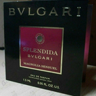 Впервые приобрела аромат от Булгари в виде миниатюрки. А именно Парфюмерную воду Bvlgari Splendida Magnolia Sensuel выбрала за магнолию в состав. Эта водичка мне понравилась. Очень эстетичный вишневый флакончик. Аромат не легкий, пряный, густой такой, немного сладковатый спустя немного времени, не летний. Для меня интересный. Стойкий и шлейфовый.