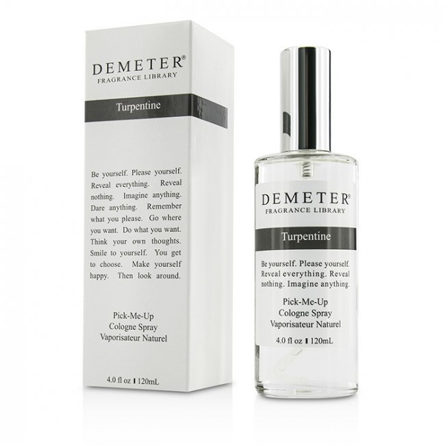 Есть парфюмеры, которые признают исключительно качественные привлекательные ароматы нежности и легкости, невинные трели цветов и растений, но совершенно отказываются от более привычных и более насыщенных мотивов. Американская парфюмерная компания Demeter признает исключительно стильные насыщенные ароматы, которые переливаются нежностью и пикантностью. Потому Demeter Turpentine с дерзкой главенствующей нотой скипидара становится изысканным вариантом для мужчин и женщин. Мощный бархатистый аромат скипидара, деликатно отдает хвойными смолами, из которых его получают. В результате аромат становится насыщенным и многогранным. Казалось бы, Demeter Turpentine должен быть скучным и серым парфюмом с неудачной главной нотой. Однако парфюмерам удалось придать звучанию неповторимый шарм и очарование. Порадовать мотивами радости, древесного тепла и хвойной пикантности, сплетенных воедино для получения качественного вещества и стильного современного аромата. Парфюмерная композиция идеально подходит мужчинам и женщинам, дополняет стильные образы.