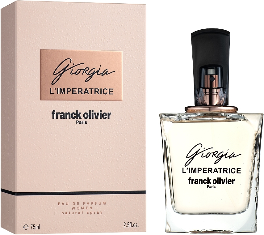 Очередной новый представитель женской парфюмерии французского происхождения Franck Olivier Giorgia L'Imperatrice уже длительное время занимает лидирующие позиции на мировом рынке. Это поистине легендарный аромат для сильных и амбициозных женщин, которые добиваются своих целей любой ценой. В вершине захватывающего ароматического треугольника единовластно правит экзотическая кассия, благоухание которой будет продолжаться несколько волшебных и незабываемых минут сразу после нанесения парфюмированной воды на кожу. Практически сразу основное пространство вокруг очаровательной хозяйки Franck Olivier Giorgia L'Imperatrice начнут занимать чарующие нотки весеннего ландыша, который гармонично сливается с классической восточной розой, образуя волшебную симфонию женственных красок. Базовый диапазон пирамиды представлен таким привычным, но уже успевшим стать легендарной классикой в мире парфюмерии, традиционным мускусом в сочетании с редкими смолами пачули. Это элегантный и роковой аромат для роскошной женщины, который прекрасно подойдет на вечерний выход в более холодное время года. Идеальным он будет для поздней осени, ранней весны или же морозной зимы. Самые смелые дамы, не боящиеся заявить о себе на весь мир, могут легко носить его и на ежедневной основе. Franck Olivier Giorgia L'Imperatrice – это дерзкое заявление о силе и уверенности, которую носит внутри себя каждая женщина, способная оказаться на самой вершине своей женственности и сексуальности. Классический и утонченный флакон отлично подчеркивает все положительные качества оригинального парфюма.
