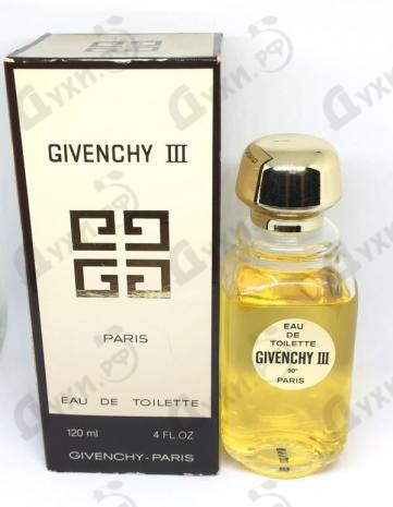Впервые легендарная ароматическая композиция под названием Givenchy III была представлена миру в далёком 1970 году, она по праву считается классикой парфюмерного дома Givenchy. А в 2007 эти духи были переизданы в честь пятидесятилетнего юбилея знаменитого парфюмерного дома. Поистине элитные и роскошные женские духи Givenchy IIIотносятся к шипровому семейству ароматов. В них гармонично переплетаются между собой чарующие ароматы альдегидов, свежей зелени, нежных цветов, а также мягких, тёплых и загадочных пряностей и экзотических пород древесины. Аромат Givenchy III создан для открытой и свободной, смелой и уверенной в себе, успешной и оптимистичной женщины, которая уверенно идёт по жизни и точно знает, чего хочет. Этот аромат можно с уверенностью назвать идеальным выбором для деловых леди, которые стремятся всегда и везде оставаться женственными и очаровательными. Прекрасный и изысканный парфюм Givenchy III облачён в простой и незатейливый, но, в то же время, очень элегантный флакон с закруглёнными краями и сверкающим золотистым колпачком. Дизайн флакона для духов Givenchy III был разработан в известном стекольном ателье дизайнера Пьера Динана (Pierre Dinand), который на протяжении многих лет сотрудничал в парфюмерным домом Givenchy.