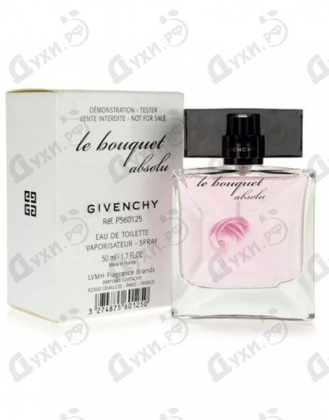 Восхитительный и нежный, чувственный и гармоничный, элегантный и неповторимый аромат под названием Givenchy Le Bouquet Absolu, созданный легендарным парфюмерным домов Givenchy, является новинкой 2011 года. Этот удивительный парфюм способен перенести свою владелицу в волшебный и таинственный сад, переполненный свежими, нежными и лёгкими, деликатными и игривыми, волнующими и соблазнительными ароматами. Новый парфюм Givenchy Le Bouquet Absolu представляет собой богатый и роскошный букет, в котором гармонично сочетается между собой гламур, таинственность, загадочность и сексуальность. Лицом аромата Givenchy Le Bouquet Absolu стала известная фотомодель из Бельгии по имени Нимуэ Смит — фотограф Вилли Вандерперр запечатлел юную красавицу сидящей на ковре, усыпанном многочисленными лепестками роз... Парфюм Givenchy Le Bouquet Absolu принадлежит к тем превосходным ароматам, которые дарят ощущение абсолютной гармонии и безграничного счастья, привлекают восторженные взоры и пробуждают самые лучшие и прекрасные человеческие чувства... Аромат Givenchy Le Bouquet Absolu представлен в концентрации туалетной воды в 50-миллилитровых флакончиках, украшенных изображением роскошной королевы цветов — розы.