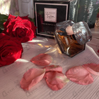 Очень красивый флакон чёрный бриллиант, с пыльно-розовым цветком. Аромат сладкий, вечерний и торжественный. Ванильно-цветочный, да чувствуется перчинка, но она такая легкая и нежная напоминает слегка жжёную карамель. Достаточно пару нажатий для яркого аромата и шлейфа.