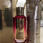 Люблю бренд Mancera, у меня много отливантов этой марки, но мне всегда хотелось обладать именно флаконом и выбор пал на Roses & Chocolate. Я покупала тестер и какой приятный был сюрприз получить флакон с коробкой и мешочком. Флакон увесистый, из толстого качественного стекла, с красивым градиентом, винтовая крышка, держать в руках одно парфманьяческое удовольствие. Сам аромат потрясающий, сочетает в себе запах разных сортов шоколада в обрамлении розы, черная смородина даёт терпкую ягодность, все это в облаке ванили. Не ванилина, а именно ванили, с присущей ей горчинкой. Кто-то считает его чуть ли не клоном YSL Manifesto, с чем я не согласна, они оба прекрасны по-своему, хоть и в одном направлении. У меня есть Manifesto и при параллельном затесте различия очевидны, обожаю оба аромата.