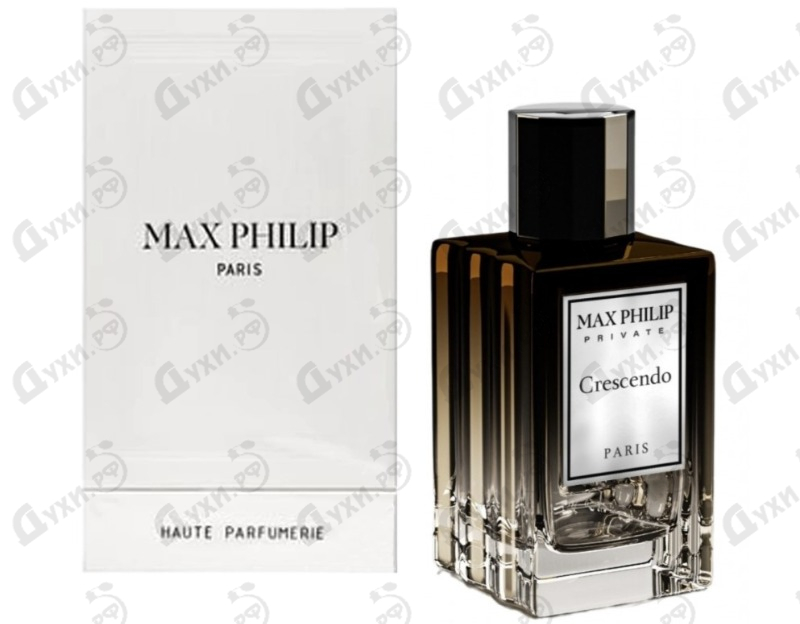 Парфюмерная вода Max Philip Crescendo — это ориентальная ольфакторная композиция по амбровым и древесным мотивам. Духи представлены на рынке нишевых ароматов в 2024 году парфюмерным брендом Max Philip из Франции. Обонятельная композиция напоминает музыкальное произведение в стиле крещендо, где происходит постепенное усиление звука. Едва уловимый тонкий экзотический древесный запах сменяется смелым интенсивным кондитерским ароматом и достигает апогея сандаловом звучании базовых нот. Духи ориентированы на утонченный и безупречный женский вкус. Запах идеально впишется в вечерний образ, дополняя красивое платье и завершая изысканный макияж. Ароматическая мелодия парфюма раскрывается шикарной древесной сладостью табака, тесно переплетающейся с нежным и терпким запахом имбиря. Дуэт ароматов сопровождается пряным экзотическим дыханием с пикантной горчинкой. Сердечная мелодия играет кондитерскими запахами пряной, амброво-древесной, горьковатой и даже слегка ликерной ванили, сладостью благоухания бобов тонка с оттенками чернослива, карамели и свежескошенного сена и насыщенным, глубоким, шоколадным блеском какао. Параллельно сердечному аккорду появляется звучание базовых нот. Древесный, мускусный, камфорный запах белого кедра со сладкими, бальзамическими и ладанными аспектами бензоина постоянно нарастает и достигает максимума в тонком и прекрасном завершении. Ароматический шлейф напоминает акустический отклик концертного зала, еще долго благоухает в пространстве.