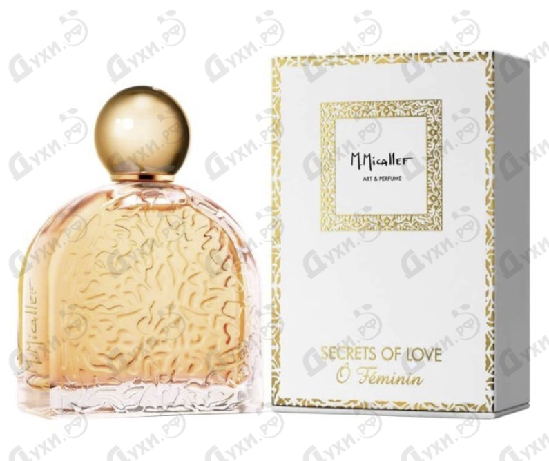 Известный поставщик нишевой парфюмерной продукции M.Micallef своих поклонников не перестает удивлять и радовать восхитительными ароматами, представленными в роскошных флаконах из богемского стекла, украшенных камнями Swarovski вручную. При помощи упаковки мастера стараются передать особенности аромата, игру нот, взаимодействие ингредиентов. Основа успеха духов в гармонии, на ней базируется союз основателей бренда — Жоффрея Ньюмана и Мартины Микалефф. Начиная с 1997 года, владелица салона красоты и директор парфюмерного дома приступили к созданию ароматных шедевров под новой торговой маркой. Успех пришел мгновенно, с первого запаха: Хрустальная линия начинается триумфальное шествие бренда. Парфюмерная композиция Micallef Secrets Of Love O Feminin посвящена цветку апельсина. Аромат упакован во флакон соответствующего оттенка, росписью повторяющего поверхность экзотического плода. Цитрусовая феерия сопровождает женщину с первой капельки бесценной жидкости. Свежие энергичные ноты бергамота, горьковато-зеленого лимона, сладко-воскового мандарина и неролиевого петитгрейна поддерживают прохладную атмосферу, пряные нюансы розового перца придают композиции мягкость, кремовый оттенок. Броское цитрусовое начало к середине аромата перерастает в яркий цветочный букет из пудрового благоухания розы, приправленного чуть кисловатым ароматом жасмина и яркими травянистыми оттенками нероли. Аромат заканчивается терпким чуточку медовым звучанием цветов апельсина с добавлением древесных сладких бальзамических брызг сандала, пачули вносят свои камфорные подтоны, сладкая ваниль оборачивает в зелено-восковое покрывало, мускус фиксирует аромат.