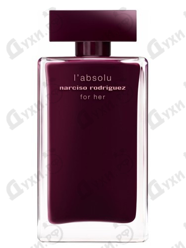 Narciso Rodriguez в 2015 году выпустил женский аромат L'absolu For Her. Автором великолепного произведения является Aurelien Guichard, который сумел в одной композиции соединить цветочные, животные и смолистые аккорды. При первом знакомстве парфюм раскрывает манящие ноты туберозы и жасмина, которые через мгновение обогащаются ароматами мускуса, амбры и сандала. В совокупности получается смелое сочетание страсти и сексуальности, слегка упрямое, но нежное и чувственное. Легкая винная нотка постепенно соблазняет обладательницу теплой лаской, а янтарный запах придает смелости и женственности. Парфюм подходит для прохладного времени года, так как на свежем холодном воздухе он может раскрыться во всю мощь, ярко играя компонентами, завораживая окружающих. Он, словно бокал теплого пряного глинтвейна, ассоциируется с душевной теплотой, уютом и чувственным настроением. Интересный флакон также отображает терпковато-сладкую композицию парфюма Narciso Rodriguez For Her L'absolu.