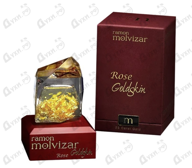 Парфюмерный бренд Ramon Molvizar основан в 1999 году выдающимся испанским дизайнером и парфюмером Рамоном Бехаром, который к тому же является владельцем известной компании Bejar perfums i cosmetics. Для названия новой торговой марки он использовал свое имя в сочетании с названием своего родного города Молвизар, расположенного на берегу Средиземного моря и славящегося богатством природы. Бренд представляет нечто большее, чем просто парфюмерию – это настоящее искусство, воплощенное в каждом флаконе. Парфюмы от Ramon Molvizar уникальны, ведь для них характерны не только изысканные составы и роскошные упаковки ручного изготовления. Внутрь бутылочек помещены пластинки из 22-каратного золота, которые мерцают в глубине ароматных жидкостей и при использовании покрывают кожу мельчайшей золотой пыльцой. Парфюмерная вода Ramon Molvizar Rose Goldskin выпущена в 2016 году в составе Gold Collection. Цветочная композиция изящно обыгрывает великолепие лучших сортов роз, используя в качестве обрамления свежие, фруктовые и мускусные аккорды. Величественный и утонченный, парфюм Rose Goldskin раскрывает свою суть с первых нот, обволакивая оттенками травянистой даваны и терпкого бергамота. В сердце ольфакторной пирамиды сконцентрирована прелесть турецкой розы, оттененная сочным персиком и нежной геранью. В базовой части звучат аккорды богатой турецкой розы, теплой амбры и чувственного мускуса, которые добавляют глубину и стойкость аромату.