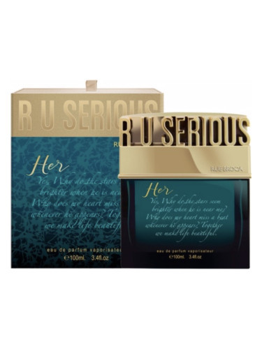 Парфюмерный бренд Rue Broca выпускает благоухающую продукцию с 2015 года. Компания входит в концерн Afnan Perfumes, который является одним из крупнейших производителей парфюмерии в Объединенных Арабских Эмиратах, его продукция присутствует на мировом рынке с 2007 года. Ароматы от Rue Broca адресованы и мужчинам, и женщинам, также имеется несколько парфюмов унисекс. В составах фирменных парфюмерных изделий используются высококачественные ингредиенты, родиной которых является восток, при выпуске применяются современные европейские технологии и научные разработки. Парфюмерная вода Rue Broca R U Serious для женщин вышла в 2020 году. Она задумана как часть парного дуэта, в составе коллекции также выпущен аромат для мужчин R U Serious Him Rue Broca. Флаконы изделий одной серии оформлены идентично, упаковка различается по цвету: женский парфюм имеет темно-синий оттенок, а мужской – бордовый. R U Serious Her Rue Broca относится к мускусной цветочно-древесной группе. В начальных нотах чарующей композиции слышится фруктовое трио – свежий бергамот, спелое яблоко и кисло-сладкая черная смородина. В средней части ольфакторной пирамиды классический цветочный альянс розы и жасмина соединяется с древесной терпкостью березы. В базовых нотах использованы главные фиксаторы ароматов мускус и амбра, которые поддерживают древесно-камфорные тона пачулей.
