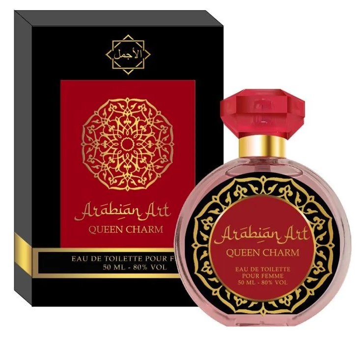Аромат Sergio Nero Arabian Art Queen Charm приглашает очаровательную леди в цветочно-восточную сказку, где царица бала — роскошная роза кружит в атмосфере чувственности и обольщения. Ольфакторный шедевр относится к линейке Arabian Art, в переводе на русский название звучит: Очарование королевы. Автор аромата — созданный в 2008 году российский бренд Sergio Nero, на рынке парфюмерии известен с 1992 года в рамках компании «Юнитоп». Марка перед собой поставила благородную задачу познакомить российских мужчин и женщин с хитами мировых парфюмов премиум класса. В ассортименте компании свыше 300 позиций, отличающихся демократичной ценой. Ольфакторная симфония Sergio Nero Arabian Art Queen Charm начинает звучание с бодрых праздничных нот мускатного ореха и ревеня, создающих сладко зеленое пикантно-острое покрывало. По мере ослабления пряных аккордов, аромат приобретает мягкость и бархатистость, на первое место выходит роза, роскошно себя проявляющая в окружении медового благоухания пиона и искреннего женственного ландыша. Постепенно в цветочную атмосферу прорывается смолянистый с нотами горечи и перца ладан, его подхватывает поражающая своей бархатной мягкой пудровой основой ваниль. Парфюмерная композиция Sergio Nero Arabian Art Queen Charm отличается глубоким обволакивающим шлейфом, мягким женским, лишенным кричащих акцентов.