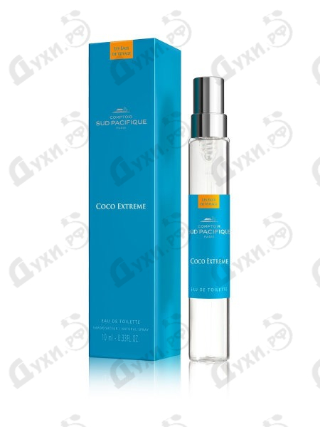 Ароматы от Comptoir Sud Pacifique пробуждают страсть к путешествиям и желание своими глазами увидеть далекие берега тропических островов, затерявшихся в Тихом Океане. Именно такие эмоции вызывает серия ароматов Les Cocos, в которую вошли экзотические композиции, посвященные тропическим фруктам и цветам. Так, аромат Sud Pacifique Coco Extreme, изданный в 2007 году, посвящен теплой, мягкой сладости и вкрадчивой чувственности кокоса. Он использован в парфюмерной композиции в разных видах. Парфюмеры попытались передать абсолютно все грани его чудесного, экзотического, невероятно красивого и притягательного аромата. В начальных нотах парфюма присутствует мякоть кокоса, оттененная сладковато-горькими нюансами цветов ванили. В сердце композиции Sud Pacifique Coco Extreme благоухает нежное, очень женственное кокосовое молоко, присыпанное пудрой и характерными оттенками миндаля. В красивом, обволакивающем шлейфе снова звучит кокос, который, в сочетании с ванилью и сахарной ватой, создает необыкновенно чувственный, сладостный и манящий аромат. Парфюм Sud Pacifique Coco Extreme относится к unisex ароматам. Но его нежная, пропитанная жарким тропическим солнцем, очень чувственная и женственная композиция больше подходит женщинам.