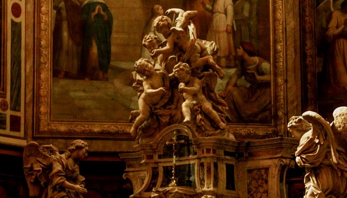 Барокко должно было визуально выразить власть и могущество, оно должно было ошеломить, привлечь внимание, заинтересовать людей. Простым в оформлении церквям протестантов противопоставляют роскошные католические храмы, украшенные богатой позолотой, лепниной, статуями, орнаментом, росписями, мозаиками, колоннами, взмывающими вверх куполами и различными видами благородного мрамора. Образцом нового стиля католических храмов стал Собор святого Петра в Ватикане. Его величественный вид потрясал воображение верующих того времени, и по сей день он является непревзойденным образцом высокой барочной архитектуры.