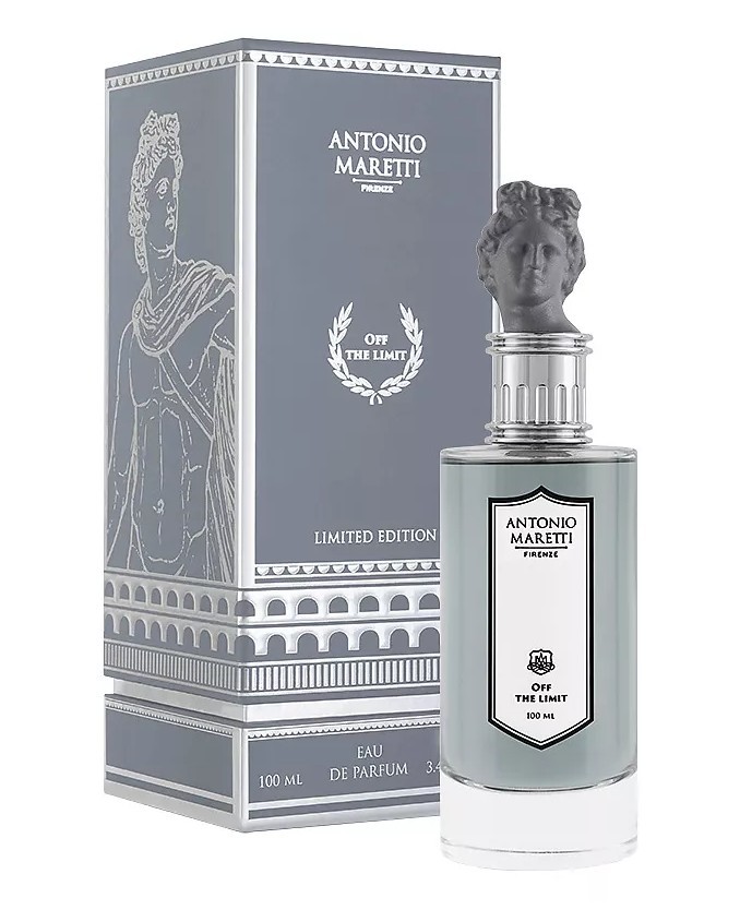 Парфюмерная торговая марка Antonio Maretti появилась в 2022 году с дебютными ароматами в необычном оформлении. Каждый флакон парфюма венчает крышечка, украшенная либо объемным изображением логотипа бренда, либо головой античной статуи. Автором всех благоухающих композиций является известный итальянский парфюмер и химик Кристиан Калабро. Созданные им ароматы воспевают красоту и своеобразие Флоренции, оригинально соединяя богатое историческое прошлое этого города в Тоскане и современные реалии жизни. Торговой маркой Antonio Maretti владеет компания Kurs Group Distribution, Ltd. Парфюмерная вода Antonio Maretti Off The Limit издана в 2023 году. Новинка обрисовывает ольфакторный образ Аполлона нашего времени — обаятельного мужчины, уверенного в своих силах и привлекательности. Название парфюма можно перевести как «Вне пределов». Романтичная композиция вдохновляет гармоничным альянсом цитрусовых, цветочных и древесных нот, она безгранично освежает и бодрит. Начало аромата соткано из свежих аккордов бергамота, лимона, черной смородины и акватических нот. Сердце ольфакторной пирамиды наполняют пряные ноты шалфея, кориандра и розмарина. В базовой части парфюма звучат мускус, амбра, оттенки дерева и дымных пачулей, оттененные ярким аккордом морских водорослей. Аромат идеален для ежедневного применения.