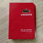 заказ номер 26154205 туалетная вода лакосте L 12 12.Rouge Отличный летний свежак на летний период. аромат больше подойдет молодым парням до 30 лет стойкость и шлейф средние. брал в качестве подарка к основному заказу. в принципе, как поливашка на лето пойдет. Для серьезных дядек будет простоват.