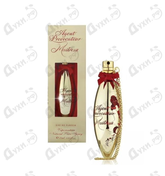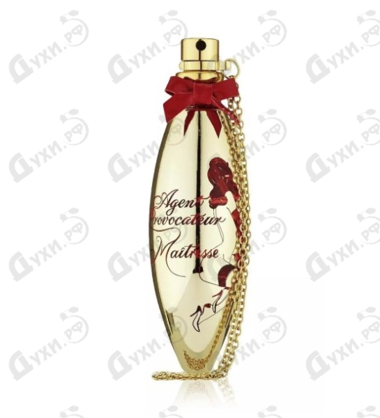 Аромат Agent Provocateur Maitresse выпускается во флаконе, имеющий характерную для данного бренда яйцевидную форму. Стеклянный флакон украшен золотистым напылением и драгоценным китайским лаком. На флаконе лазером выгравировано непосредственно название самого аромата, а также силуэт обнаженной девушки, британского известного иллюстратора и художника Ричарда Грея. Этот цветочно-мускусный аромат наполняет тело успокоением и вместе с тем хорошим настроением, радостью и сексуальностью, каждая обладательница этого парфюма, способна тронуть сердце любого мужчины. Этот аромат также многогранен и оригинален, как и сама женщина, которая им пользуется хотя бы иногда.