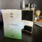 Аромат я заказывала вслепую. Ajmal парфюмерный восточный бренд, но для меня ни одного намека. Raindrops –капли дождя. Действительно, аромат легкий, шлейфовый , женственный, и к тому же, стойкий, на одежде держится вторые сутки. Я счастлива, что мой выбор удачен.