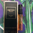 Шикарно оформленный пробник Blazing lily Мcqueen и содержимое очень приятно! Лилия с землистыми пачули и сладкий дым. Также присутствует лёгкий оттенок горького шоколада. Очень ярко, необычно и красиво!