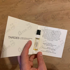 Купила фирменную миниатюру Tardes 15 мл, очень красивое оформление флакончика, но самое главное содержимое! Приятнейший замшево-миндальный аромат, не кричащий, нежный, действительно чувствую некую ноту уходовых средств, по стойкости и шлейфу пока непонятно, только получила заказ