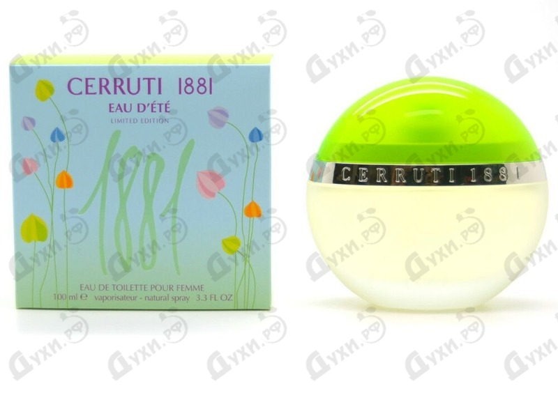 Туалетная вода Cerruti 1881 Eau D'ete выпущена в 2003 году парфюмерным брендом Cerruti. Создала ее парфюмер Beatrice Piquet. Этот парфюм относится к летним ароматам. Его утонченная свежесть предназначена для молодой романтичной особы, которая прекрасно сознает свою привлекательность и умеет ей пользоваться. Аромат напоминает о лете и о том, что приносит нам эта пора года прогулки по зеленым аллеям, свежесть зелени и фруктов, яркие, солнечные, наполненные весельем, дни. Вдыхая парфюм, как будто переносишься на залитую светом полянку, видишь солнечных зайчиков, прыгающих между ветками, ощущаешь на коже легкий прохладный ветерок, доносящийся из лесной чащи.