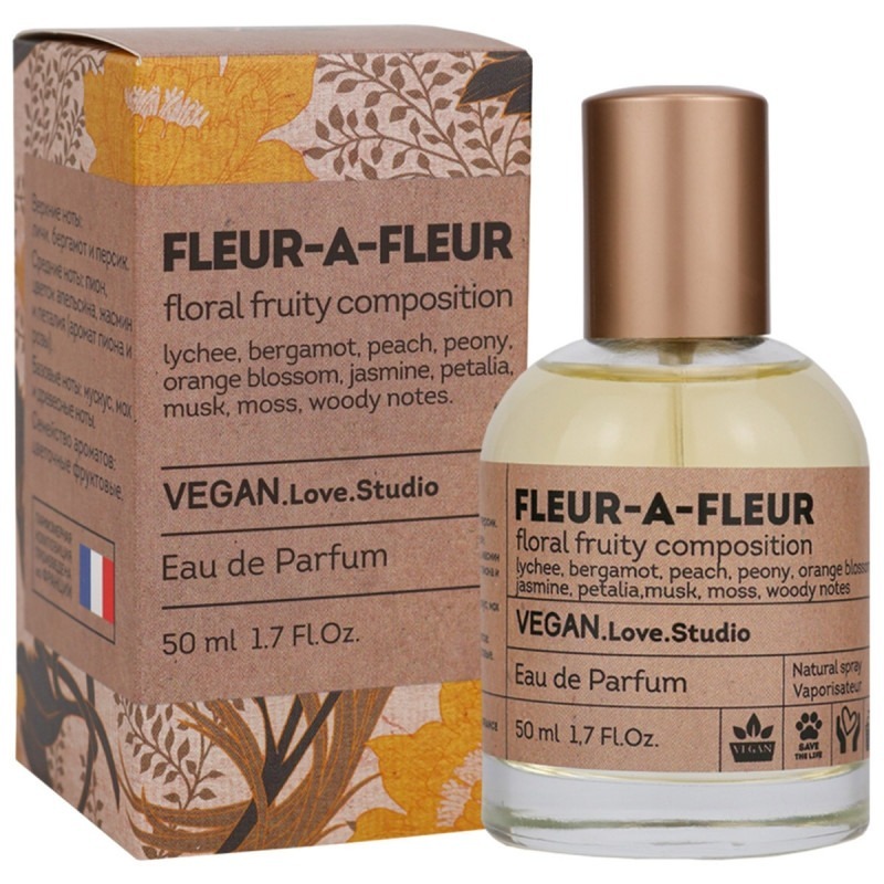 Парфюмерная вода Delta Parfum Vegan Love Studio Fleur-A-Fleur — свежий, цветочный и одновременно тёплый аромат от российского бренда Delta Parfum. Ольфакторная симфония открывается лёгкими и яркими нотами личи, бергамота и османтуса. Личи придаёт сладость и сочность, бергамот добавляет свежесть и лёгкость, а османтус вносит экзотическую, чуть фруктовую цветочную нотку. Эти начальные акценты создают жизнерадостное, весеннее настроение. Сердце аромата раскрывается в богатую и элегантную цветочную композицию с жасмином, пионом, фрезией и цветком апельсина. Жасмин придаёт роскошную цветочную полноту, пион — лёгкость и свежесть, фрезия — воздушность и зелёные ноты, а цветок апельсина добавляет нежность и сладость, создавая гармоничное и многослойное цветочное сердце. База аромата состоит из мха, мускуса и сандалового дерева. Мох добавляет землистые и зелёные оттенки, мускус — мягкость и чувственность, а сандаловое дерево приносит древесную теплоту и стойкость. Эти ноты создают спокойную, утонченную основу, которая завершается элегантным шлейфом. Парфюм Delta Parfum Vegan Love Studio Fleur-A-Fleur - сдержанный шик, сочетающий фруктовую яркость с цветочной изысканностью и тёплым древесным шлейфом. Он идеально подойдёт для дневного использования в тёплое время года, когда хочется чувствовать себя свежо и элегантно.