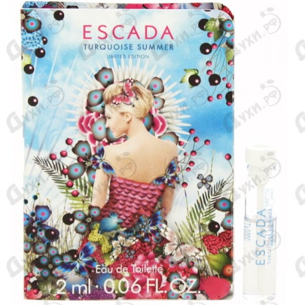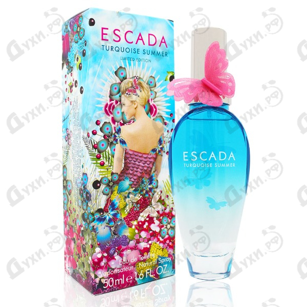 Продолжая традиции парфюмерного бренда Escada, в 2015 году был создан новый женский аромат Escada Turquoise Summer, вдохновленный энергетикой солнечного лета, безмятежным настроением и легкостью. Цветочный фруктовый парфюм призван переносить обладательницу в жаркое лето, дарить ей буйство красок, срочность фруктов, благоухающую энергетику цветов. Дивный коктейль пьянит и вдохновляет, поскольку сосредоточие сочных сладких фруктов и цветочных лепестков дарит особую энергетику, ощущение бесконечного праздника. Словно глоток витаминного коктейля, сладкая клубника, ананас, конфеты тутти-фрутти становятся своеобразным открытием ароматной сущности. Цветочные ноты в сердце Escada Turquoise Summer постепенно уступают место бархатистой базе, составленной из нот сандалового дерева и душистой прозрачности ванили. Словно крылышки бабочек и их изящное порхание, этот аромат окружает женщину неповторимой кокетливостью, завораживающий соблазнительностью. Нанесите на кожу несколько капель потрясающей эссенции лета, чтобы перенестись в мир курортных романов, страстных танцев, жизнерадостного веселья.