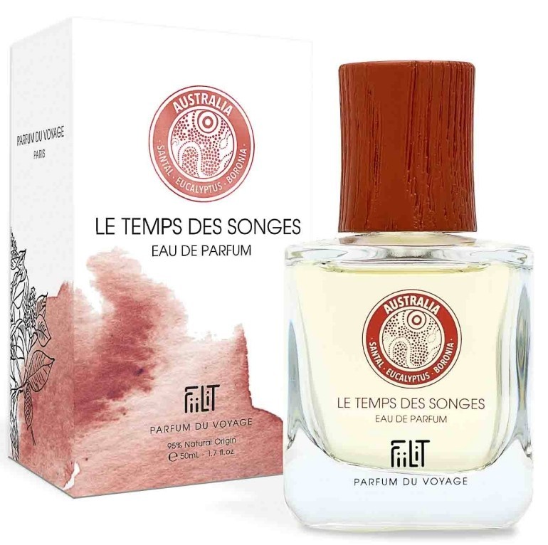 Всем, кто желает совершить восхитительный вояж и виртуально посетить далекие страны и континенты, следует обратить внимание на новый французский бренд Fiilit Parfum Du Voyage. Его основатели, сами заядлые путешественники и любители природы, решили поделиться своими эмоциями от поездок по удивительным местам, знакомства с живописной флорой и народными традициями. Их компания с 2016 года предлагает прекрасные ароматы, представляющие собой ольфакторную визуализацию определенной местности – Японии, Индии, Кубы, Бали, Полинезии и т.д. Всего торговая марка выпустила 17 парфюмов, при этом путешествия и творчество продолжаются. Парфюмерная вода Fiilit Parfum Du Voyage Le Temps Des Songes – Australia издана в 2022 году в качестве благоухающего отчета о поездке в Австралию. Парфюмеры, сотрудничающие с брендом, в представленном аромате сделали акцент на древесных нотах, чем подчеркнули невероятное богатство австралийских лесов. Главная роль в композиции отведена вечнозеленому сандалу, обладающему теплым и мягким ароматом. Его успокаивающее и расслабляющее действие задает общий тон парфюму. Нота белого сандала начинает звучать с первого вдыхания аромата. Ближе к середине ольфакторной пирамиде древесная тема дополняется аккордами маслянистого эвкалипта и смолистого кипариса. Завершают композицию оттенки чувственной боронии, бархатистого османтуса и пряного чайного дерева.