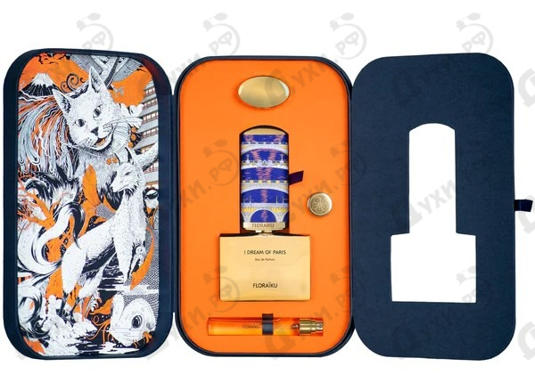 Exclusivities Collection - это восхитительная коллекция эксклюзивных ароматов французского дома Floraiku, в которой собраны лучшие произведения искусства талантливых европейских мастеров. Очередное обновление грандиозной линейки состоялось в 2021 году с выходом нового элитного парфюма Floraiku I Dream Of Paris, переносящего нас в романтичную атмосферу улиц французской столицы. По традиции, аромат заключен в индивидуальный флакон узнаваемой формы, который оформлен в аутентичную коробку в стиле бенто. Ее лицевая часть украшена изысканным флористическим орнаментом, а внутри сказочной шкатулки восседает роскошный сосуд с позолоченной крышкой, в паре с миниатюрным флаконом-пробником. Третье по счету издание лимитированной коллекции наделено выразительным цветочно-фруктовым характером, в котором прослеживаются нотки благородного восточного гурманства и следы древесины ценных пород. Многие ингредиенты и абсолюты, что вошли в состав безупречной ольфакторной формулы, привезены из самых различных уголков мира. Например, классическая давана была доставлена из солнечной Индии, смолистый ладан - из Сомали, а финальный гваяковый шлейф своей красотой обязан особому сорту этого дерева, выращиваемого в Парагвае. Цитрусовая вершина треугольника переливается горечью красного апельсина и мандариновыми красками в окружении терпких капель яблочного нектара. Цветочная грань пирамиды Floraiku I Dream Of Paris оформлена в оттенках классической розы, украшенной бархатом сладких плодов сливы. В завершении мелодии зазвучат сакральные ноты ладана, мирры и бальзамического пачули в объятиях кожаного полотна.