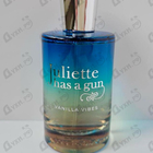 Vanilla vibes от Juliette has a gun необыкновенный аромат. первое, что слышу это ноты свежести солёного бриза и что-то нежно сладкое. когда наносишь на кожу соль постепенно уходит на второй план и появляется лёгкая дымка ванили, переходящая со временем в терпкиий цветочный запах орхидеи. Аромат нежности, аромат отдыха, аромат моря, аромат лета! Не оставляет равнодушным. Подруга говорит:" добрый запах" , молодой человек в магазине сказал: "девушка от вас пахнет летом!" муж говорит:"как же от тебя вкусно пахнет!" и даже маме понравилось, хоть она и не любит сладкий парфюм. купила по отзывам, так как искала соленую ноту в парфюмер. а тут ещё и любимая ваниль и орхидея.. стойкость у него средняя, хотя в конце дня слышу нотки, на одежде точно аромат останется, шлейф не задушит окружающих, и в жару тоже. он очень хорош летом и осенью. посмотрим, что будет зимой и весной. купила 100 мл и очень рада,ванильные волны будут уносить меня морское побережье, в лето. Благодарю Духи.Рф за такие лояльные цены.