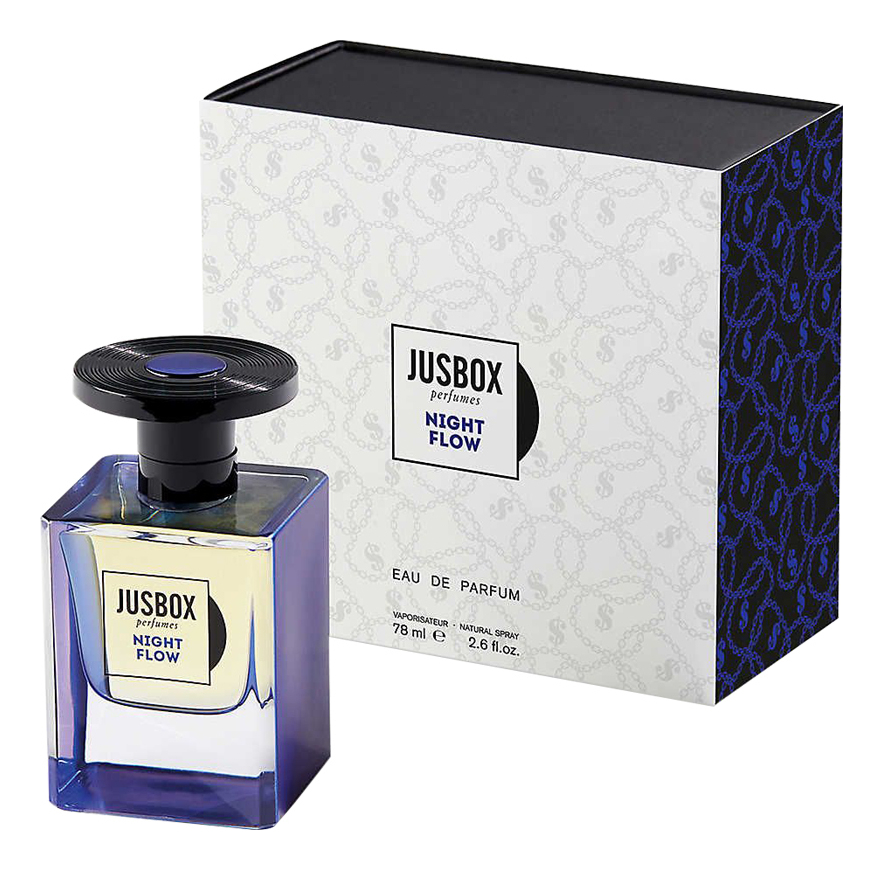 Итальянский бренд Jusbox представляет эксклюзивное направление в парфюмерии, построенное на объединении ароматов с музыкой. Каждая фирменная композиция воплощает ольфакторное видение музыкального стиля, мелодии, образа исполнителя и т.д. Новая торговая марка появилась в 2016 году. Ее основали брат и сестра Вальдо, влюбленные в два вида искусства – музыку и парфюмерию. Дизайн упаковки брендовой продукции соответствует общей концепции Jusbox: флаконы вмещают в себя ровно 78 мл, что напоминает о том количестве оборотов в минуту, с которым вращались первые грампластинки; колпачки имеют верхнюю часть, повторяющую форму винилового диска. Парфюмерная вода Jusbox Night Flow вышла в 2020 году. Композиция создана известным парфюмером Жюльеном Раскине, она яркими штрихами набрасывает картину ночного выступления рэперов на улицах Нью-Йорка. Аромат приглашает в динамичный мир ритмов, страстей и интриг. В его начале звучат сладкая малина, пряный шафран и острый розовый перец, феерические, бодрящие и влекущие ноты. Сердце Jusbox Night Flow будоражит сочетанием горькой зелени даваны с оттенками бархатистого османтуса и дерзкого жасмина самбак. Базовые ноты парфюма составлены из аккордов мягкой кожи, смолистых пачулей, сладостного толу бальзама и серой амбры, что создает глубину и стойкость аромата. Парфюмерная вода лучше всего проявляет свои качества вечером.