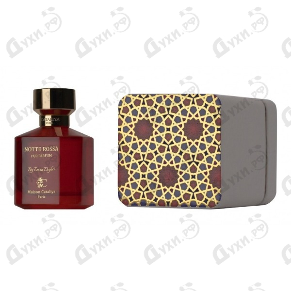 Восточный аромат Maison Cataliya Notte Rossa посвящен "Красной ночи" — мечети в иранском городе Шираза. Здание построено в 19 веке, расписано узорами из разноцветных керамических кусочков мозаики и стекла. Попадая на стены, солнечные лучи образуют удивительные по красоте калейдоскопичные или витражные блики. Автор ароматной композиции — молодой французский бренд Maison Cataliya, компания названа по имени дочери основателя торговой марки Дахмана Уахи — Каталии. Все ольфакторные произведения созданы под впечатлением от роскошной мозаики зеллите, украшающей дворцы и мечети Средиземноморья. Maison Cataliya Notte Rossa упакована в великолепный дизайнерский граненый флакон, напоминающий рубин с эмблемой мечети "Красная ночь". Ольфакторная песня стартует хором из мягкого орехового чуть горьковатого миндаля, тропического запаха кокоса, восточных травянисто-древесных нюансов черной смородины, нежного освежающего звездчатого аниса и манящей карамели. Как только первое впечатление рассеивается, раздаются легкие соблазнительные аккорды фисташки, вокруг которой кружатся в танце пудрово-цветочные звуки фиалки, древесно-пряные нюансы кедра и землисто-корешковые блики моркови. Maison Cataliya Notte Rossa завершается чувственной восточной мелодией, богатой на древесно-фиалковую составляющую ириса, пряно-дымные ноты ванили, древесные анималистические оттенки серой амбры, мускуса и амбретты.