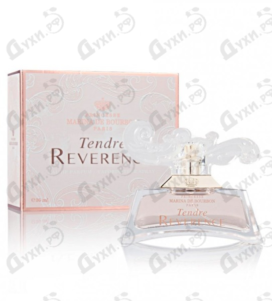 Marina De Bourbon в 2014 году выпустила новый женский аромат Tendre Reverence, который является фланкером парфюма Reverence, выпущенным семи годами ранее. Аромат с первых минут завораживает своей роскошью и экстравагантностью. Словно вычурные дамы в пышных платьях, с высокими сложными прическами из белых локонов, которые, в ожидании праздничного бала, стоят и перешептываются, прикрывая красные губки широкими веерами. Эпоха роскошного барокко и рококо тонко обыграна в воздушных нотах персика, мускуса и ванили, и кажется, что фигурки фарфоровых ангелов рассыпают по залу лепестки пиона, фиалки и магнолии. Этот чувственный аромат будет ярким дополнением к повседневному образу, потому что способен растопить самое ледяное сердце и поселить в душе спокойствие и благополучие. Экстравагантный флакон Tendre Reverence также выполнен в духе барокко – пастельный персиковый тон заключен в плавные перетекающие линии, а крышка в форме пышной лепнины служит главным объектом внимания.