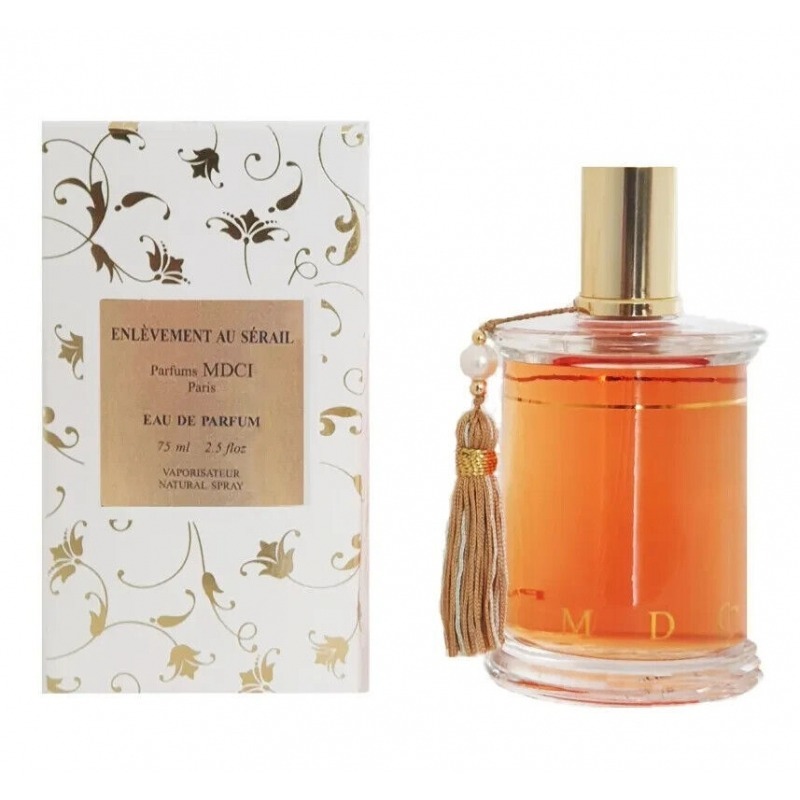В 2006 году знаменитый парфюмер и бизнесмен Франсис Куркджян для французского парфюмерного дома MDCI Parfums создал настоящий ольфакторный шедевр - Enlevement Au Serail (Похищение из сераля). Композиция создана под впечатлением от одноименного произведения Моцарта по правилам классической французской школы, стала отражением дерзости, спонтанности, аристократизма и роскоши. Высокое качество парфюма отмечено пятью звездочками Луки Турина, что соответствует оценке шедевр. Великолепное звучание аромата соответствует атмосфере великосветского выхода или торжественного мероприятия, сочетается с бриллиантами, аристократичным антуражем, изысканными тканями.Роскошная, соблазнительная, притягательная мелодия MDCI Parfums Enlevement Au Serail стартует экзотическим, дурманящим благоуханием иланг-иланга в окружении цитрусовой прохлады сладкого мандарина и терпкого бергамота, что обеспечивает помпезное, очаровательное, манящее вступление. В сердце доминирует фееричный, восхитительный букет из изысканного, пьянящего жасмина, медово-сливочной, обворожительной туберозы, элегантной, классической розы и сладко-дурманящего, хмельного желтофиоля. В завершении композиции MDCI Parfums Enlevement Au Serail раздается древесно-сливочное звучание экзотического сандала, влажные, землистые ноты тропических пачули и сухие, дымные оттенки ветивера с многогранными, чувственными искрами ванили.Другие товары от Mdci Parfums