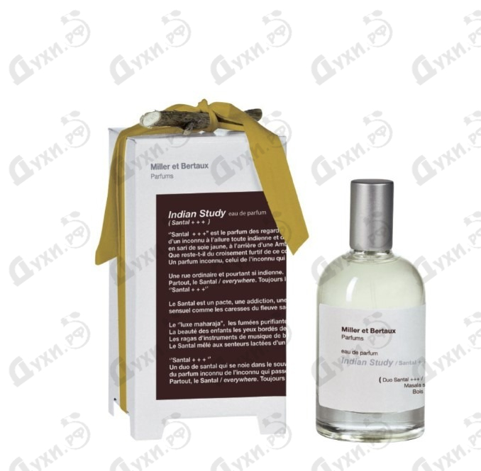 В 2017 году эксклюзивный французский бренд Miller Et Bertaux представил свою авторскую версию аромата на тему индийского сандала, назвав его загадочным именем Miller Et Bertaux Indian Study. Эта популярная среди современных парфюмеров нота привлекательна еще и тем, что способна раскрываться абсолютно по-разному в зависимости от направления расставленных мастером-парфюмером приоритетов в формуле. В древней Индии сандаловое дерево считается священным и обладает рядом мистических и необъяснимых свойств, подаренных ему самой природой. Грех не воспользоваться этим преимуществом в ольфакторных целях, что и сделали аутентичные мастера нишевой марки, порадовав заинтересованную публику оригинальным парфюмерным миксом из древесных и пряных аккордов, заигравших еще звонче и выразительнее на фоне богатой мускусной роскоши Востока. Композиция будто бы учит нас отказаться от поверхностного взгляда на привычные вещи и заглянуть в глубины их происхождения, прочувствовать все эмоции и переживания, что таятся в сердцах окружающих людей. Философская композиция переливается экзотическими аккордами умиротворяющего амириса и древесины карри, что подчеркивают колоритную сливочность звучания традиционного восточного сандала. Сладковатые флюиды массойи напоминают благоухание расколовшегося кокосового ореха и придают аромату бархатистой мягкости и солнечного тепла. Земная грань удивительного парфюма Miller Et Bertaux Indian Study раскрывается в шлейфе трепетными волнами традиционного мускуса и кумина.