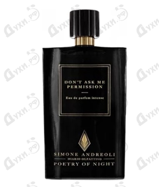 В октябре 2017 года, на одной из популярных парфюмерных выставок Pitti Fragranze был презентован новый ориентальный шедевр итальянской нишевой марки Simone Andreoli, который получил имя Simone Andreoli Don't Ask Me Permission Intense. Долгожданный аромат стал почетным девятым представителем знаменитой парфюмерной коллекции «Diario Olfattivo» и отражает красоту и многогранность таинственной Бразилии, рассказывая о головокружительной атмосфере страсти ночного Рио-де-Жанейро. Знаменитые на весь мир пляжные вечеринки на Копакабане известны на весь мир своей аурой безграничной свободы, ведь этот центр тусовочной жизни страны, как нельзя лучше отражает дух восхитительной бразильской культуры: страстной, волнующей и отвергающей всякие запреты и рамки. Продемонстрировать поклонникам всю гамму этих ярких эмоций и чувств взял на себя сам основатель итальянской марки, молодой амбициозный парфюмер Simone Andreoli, который смог рассказать миру на ольфакторном языке об этой волшебной и жаркой стране. Вдыхая насыщенный гурманский запах этого парфюма, буквально физически ощущаешь жгучее тепло знойного бразильского солнца, слышишь голоса смеющихся людей и звуки зажигательной музыки, перед которой невозможно устоять. Этот невероятный танец открывается вступительными тропическими аккордами лайма и апельсина, чья мякоть буквально утопает в сахарном сиропе. Восхитительный фруктовый микс из маракуйи и персика звучит узнаваемым запахом самого популярного пляжного коктейля кайпиринья, а нестандартные восточные нотки гелиотропа и гипнотического иланг-иланга наполняют картину безграничной чувственностью и соблазном. Пудровый шлейф Simone Andreoli Don't Ask Me Permission Intense утопает в пьянящих каплях дорогого ликера и остается на коже теплыми амброво-мускусными нюансами.