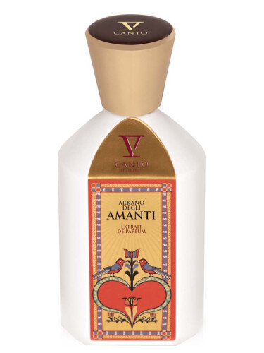 На ольфакторном небосклоне парфюмерная марка V Canto засветилась в 2015 году, отделившись от бренда Tiziana Terenzi в самостоятельную единицу. Компания основана семьей Терензи, предки которой проживали вблизи замка Кастелло-ди-Градара. Расположенная на перекрестке дорог, крепость привлекала разбойников и путешественников, среди них был Данте Алигьери. Вдохновенный уникальной красотой местности, поэт посвятил ей одну из глав Божественной комедии, эта история легла в основу первой линейки ароматов. Парфюм V Canto Arkano Degli Amanti (Влюбленные) впервые представлен в 2024 году, пополнил коллекцию Arkano, переводится как Тайный или Загадочный, относится к группе восточные, цветочные. Аромат упакован в фирменный флакон бренда, украшенный арканом Влюбленных из карт таро, которому приписывают силу привлекать внимание представителей противоположного пола, пробуждать сильное страстное чувство, заставляющее влюбленные сердца стучать в унисон. Пирамида V Canto Arkano Degli Amanti раскрывается роскошным благоуханием розы, фруктово-цветочными вибрациями сицилийского апельсина, сладковато-дымными нюансами шафрана. В сердце композиции на первое место выходит богатый на цветочные и травяные ноты жасмин самбак, вокруг которого в чувственном хороводе кружится пудровая итальянская фиалка, яркие с кислинкой нюансы малины, чарующие бальзамическо-сливочные звуки иланг-иланг. База V Canto Arkano Degli Amanti представлена восточной феерией из древесно-молочных обертонов австралийского сандала, аромата дубового мха, напоминающего запах нагретой солнцем земли, мягких акцентов мускуса, хвойно-ладанных нот серой амбры, анималистического сладкого благоухания уда.Другие товары от V Canto