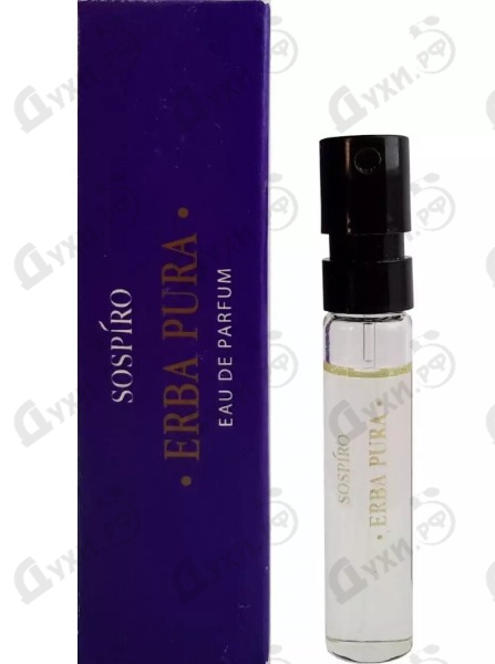 Erba Pura – абстрактный, мягкий, безумно современный парфюм, в котором переплетаются средиземноморские аккорды сладких цитрусов с гурманскими, теплыми и чувственными восточными ароматами. Увидела свет в 2013 году. Мягкий аромат принадлежит к семье цветочных фруктовых букетов, он окутывает своих владелиц ориентальным флером теплых восточных благовоний и средиземноморскими запахами цитрусов. Те, кто, "надевает" на себя Erba Pura (в переводе звучит как «чистые травы») - современны и обаятельны, независимы и привлекательны, свободны и самостоятельны. Абстрактный парфюм заключен в эксклюзивную фирменную непрозрачную бутылочку насыщенного фиолетового цвета, увенчанную крышечкой в виде золотой короны. На флакон нанесены золотистые орнаменты. Неординарный "носибельный" аромат с великолепным длительным шлейфом, яркий и громкий. Летящая композиция очень схожа с прогулкой по летним зеленым лугам. Итальянка по происхождению, Sospiro Perfumes Erba Pura несет неисчерпаемый источник энергии и позитивное настроение на целый день.